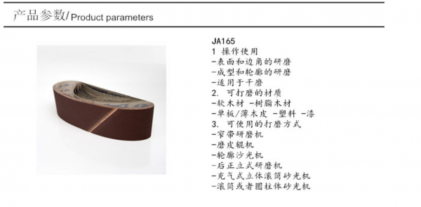 JA165:采用纯棉的柔性布基,使操作者便于以各种形状,各种形态使用不仅可以加工成张页,还可以加工成窄卷、砂带等。