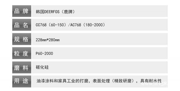 天津韩国鹿牌DEERFOS 水磨砂纸CC768/AC768 天津韩国鹿牌DEERFOS 水磨砂纸CC768/AC768